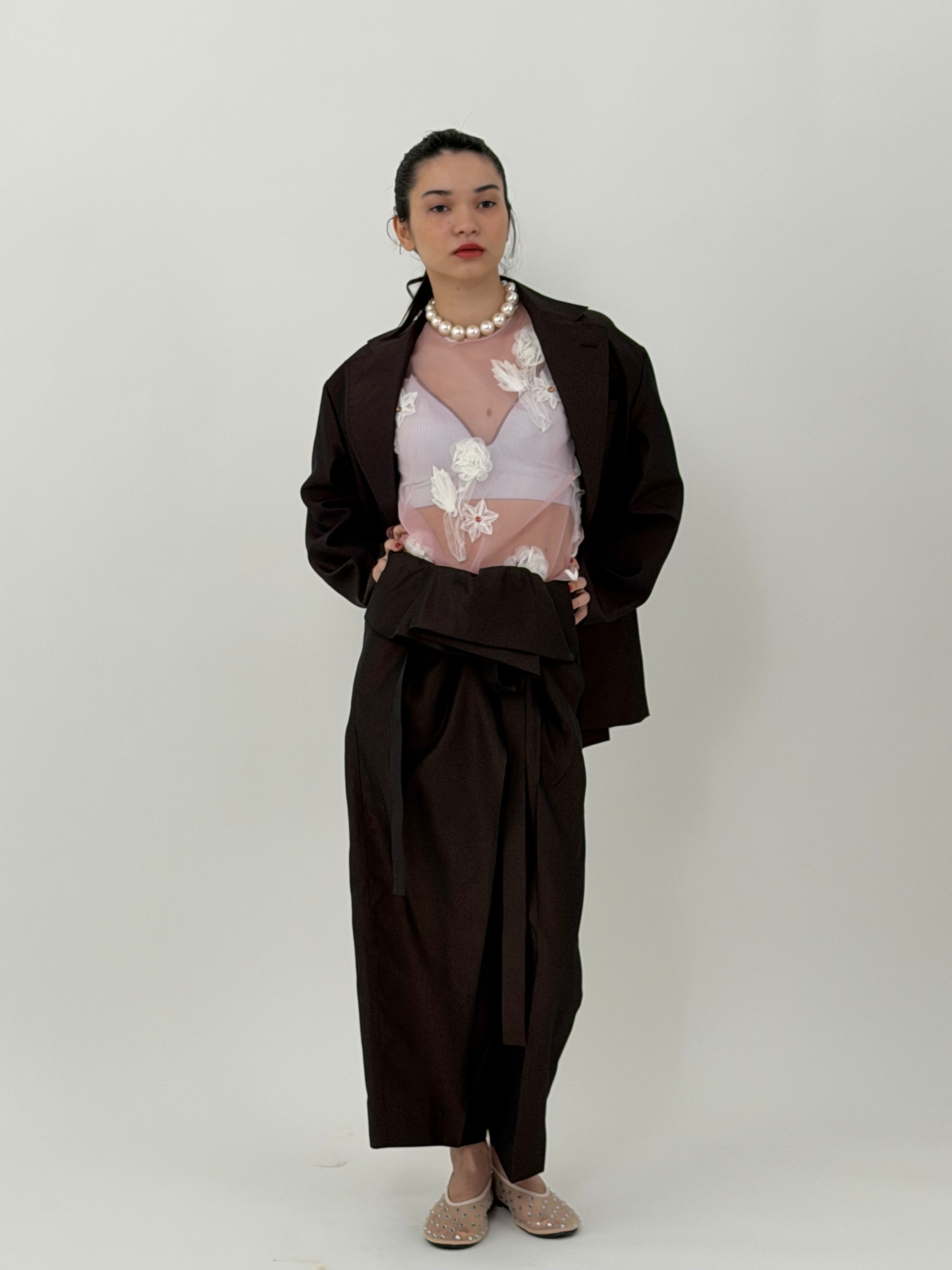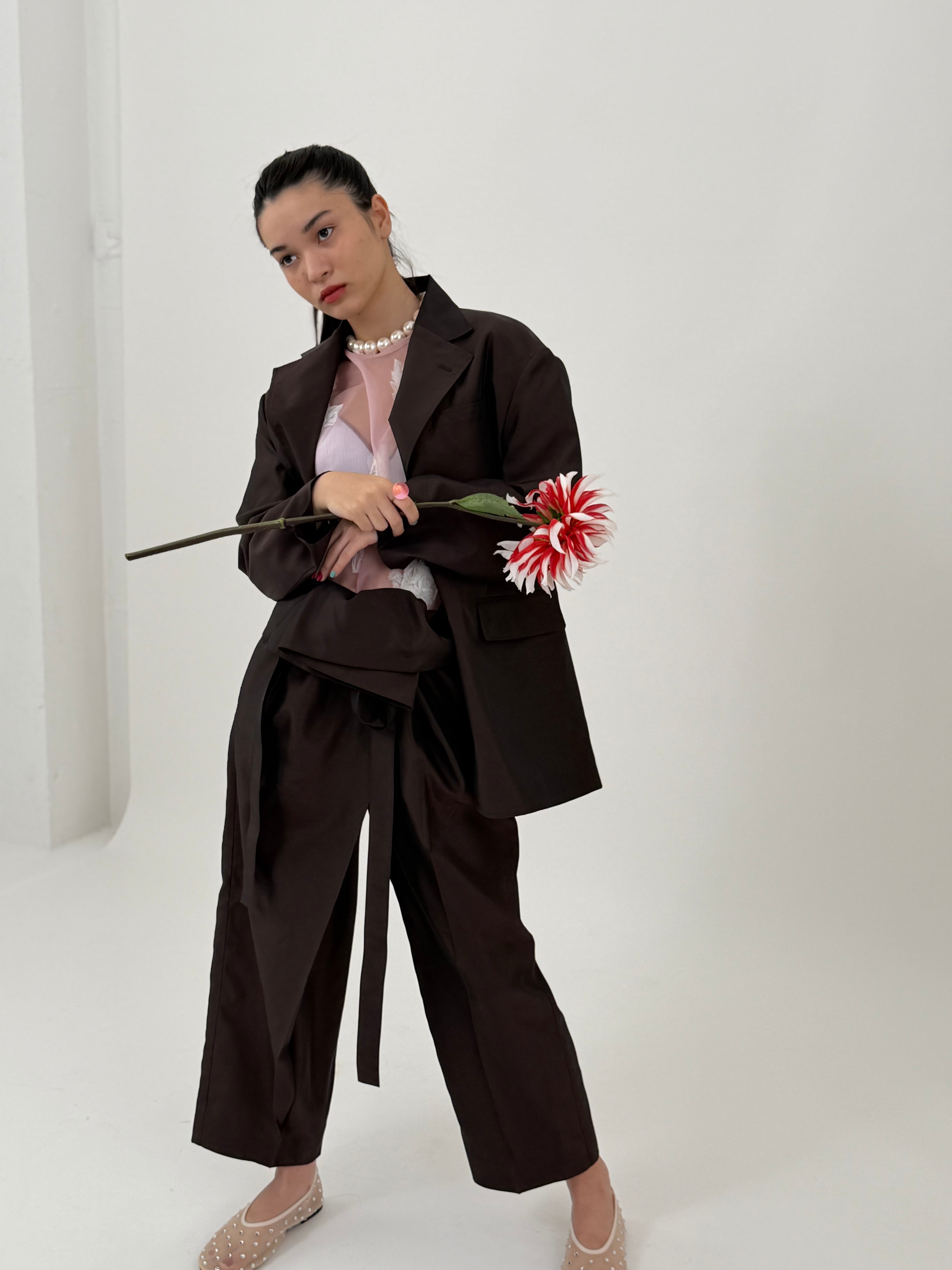 ナイロンシルクのタッサーを使用した、ゴムパンツ。