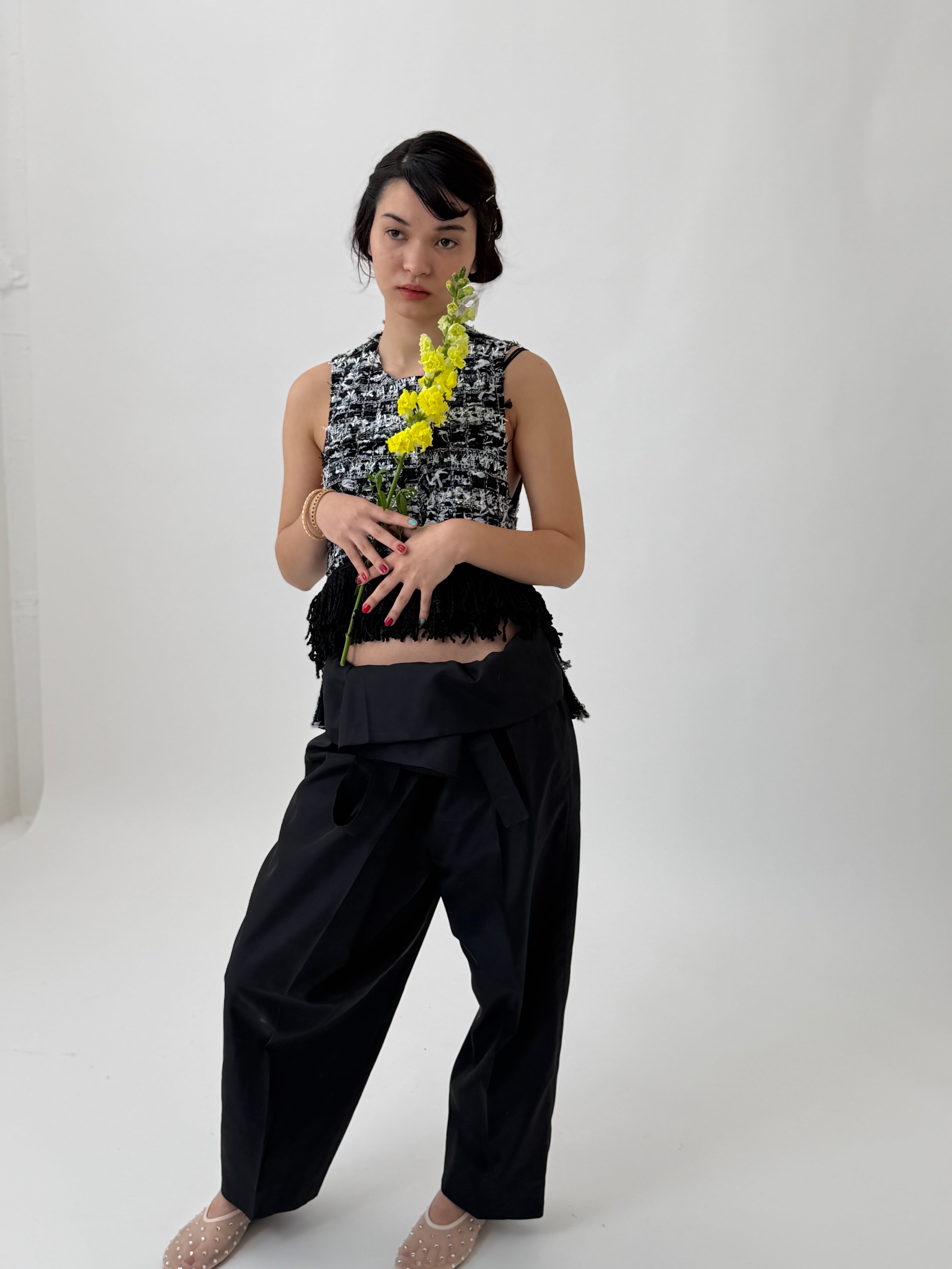 チョッキツイード price✴︎43000yen【税込】 color✴︎ブラック ホワイト size フリー フランスの老舗ツイードメーカー マリアケントのツイードを使用した、NEWチョッキ^_^ 皆様お待たせしました。